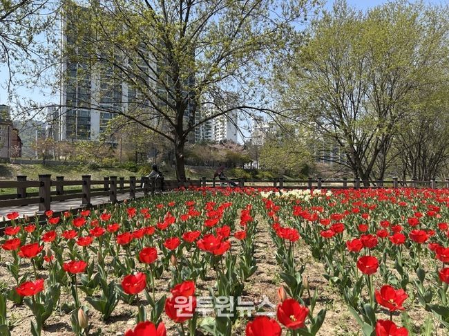 (원투원뉴스) 의정부시가 하천 구역 내 불법 경작지를 적극 정비하고, 그 자리에 튤립 정원을 조성해 시민들에게 활기찬 봄 풍경을 선사하고 있다.