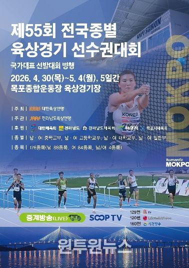 (원투원뉴스) 목포시는 오는 4월 30일부터 5월 4일까지 5일간 목포종합경기장에서 ‘제55회 전국종별육상경기선수권대회’와 ‘2026 아시아투척선수권대회’를 개최한다고 밝혔다.