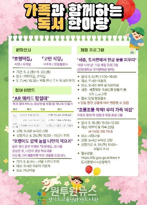 (원투원뉴스) 경기도교육청과천도서관이 5월 가정의 달을 맞아 ‘가족과 함께하는 독서 한마당’을 운영한다.