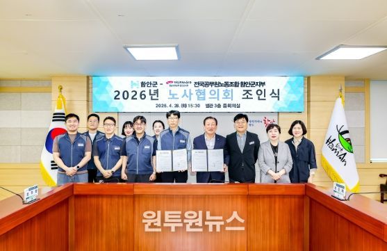 (원투원뉴스) 함안군은 지난 28일 군청 3층 중회의실에서 전국공무원노동조합 함안군지부(지부장 조주환)와 공무원 권익 향상과 복지 증진을 위한 노사협의회 합의서에 최종 서명했다고 밝혔다.