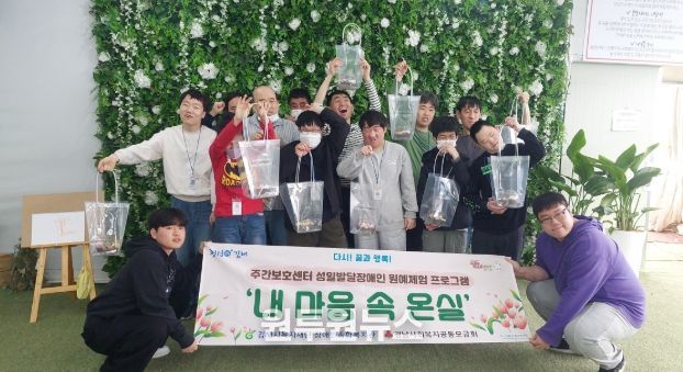 (원투원뉴스) (재)김해시복지재단 김해시장애인종합복지관은 지난 4월 3일과 17일 양일간 주간보호센터 이용자를 대상으로 성인발달장애인 원예체험 프로그램 ‘내 마음 속 온실’을 진행했다고 밝혔다.