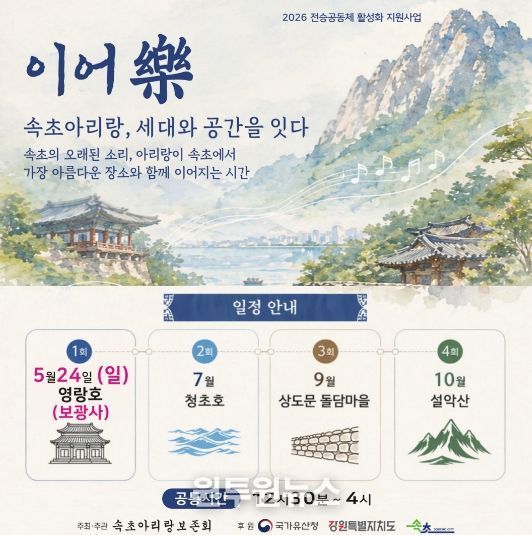 이어락은 국가유산청 ‘2026년 전승공동체 활성화 지원사업’ 공모에 선정된 ‘강원아리랑 문화산업화 프로젝트’의 하나로 정선군과 원주, 속초시 등 3개 지자체가 협업해 추진하는 사업이다.