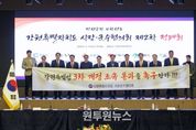 (원투원뉴스) 강원특별자치도시장군수협의회는 2026년 2월 4일 오전 11시, 영월군 ‘더 한옥헤리티지 영빈관’에서 민선8기 4차년도 제2차 정례회를 개최하고 각 시·군의 주요 현안에 대하여 심의하고 대응책을 논의했다. 이날 회의에서는 △강원특별법 3차 개정안 통과 촉구 공동결의문 채택(철원군) △장성광업소 수몰 방지 대책 마련 건의(태백시) △산림청 국유림 마을안길 포장 건의(홍천군) △도로명주소 끝부분 괄호에 통·리 표기 추가 건의(횡성군) 등 총 8건의 안건이 논의됐으며, 의결된 안건은 강원특별자치도와 중앙부처에 건의될 예정이다. 특히 협의회는 공동결의문을 통해 강원특별자치도의 실질적 권한 이양과 규제 특례를 담은 ‘강원특별법 3차 개정안’의 국회 조속 통과를 강력히 촉구하며, 미래산업 글로벌 도시로의 도약을 위해 18개 시·군이 한마음으로 결집할 것을 다짐했다. 또한 산림청 국유림 마을안길 포장 건의 등 각 시·군이 마주한 규제 해소에 뜻을 모았으며, 마지막으로 이상호 태백시장이 긴급 건의한 장성광업소 수몰 방지에 대해서도 정부 차원의 실질적인 대책 마련을 요구하기로 했다. 이현종 강원특별자치도 시장군수