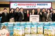 (원투원뉴스) 지난 2일, MG하남새마을금고는 설 명절을 맞아 ‘사랑의 좀도리 운동’의 일환으로 백미 200포 총 2,000kg을 하남시미사강변종합사회복지관에 전달하며 지역사회 내 취약계층 이웃을 위한 따뜻한 나눔을 실천했다. ‘사랑의 좀도리 운동’은 쌀을 한 숟가락씩 덜어 모아 어려운 이웃을 돕는 전통적인 나눔 활동으로, MG하남새마을금고는 오랜 기간 이 운동을 통해 지역사회 취약계층을 위한 나눔을 지속적으로 이어오고 있다. 이번에 전달된 백미 200포는 설 명절을 앞두고 생계 부담이 큰 취약계층 가정에 전달되어 따뜻한 명절을 보내는 데 도움을 줄 예정이다. 이날 전달식에는 MG하남새마을금고 이점복 이사장 및 임직원을 비롯하여 하남시민생안정후원회 한상영 회장, 하남시미사강변종합사회복지관 조혜연 관장, 하남시니어클럽 양우식 관장, LH행복꿈터 지역아동센터 김길임 센터장, 다함께돌봄센터 김고운 센터장이 함께 자리를 빛내주었다. MG하남새마을금고는 매년 백미 지원뿐만 아니라 냉방기기 지원, 김장김치 지원, 생활용품 후원, 지역사회 상생 활동 등 다양한 사회공헌 활동을 통해 지역사회와 함께 성장하는 금융기관으로서의