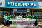 (원투원뉴스) 하남시 천현동은 지난 2월 3일 천현동 새마을협의회 및 부녀회 주관으로 관내 저소득층 50가구에‘사랑의 떡·물김치 나눔 행사를 실시했다'고 밝혔다. 이날 새마을협의회·부녀회 회원들은 추운 날씨에도 이른 아침부터 소외된 이웃을 위해 떡과 물김치를 직접 담아 전달하며 따듯한 정을 나눴다. 새마을협의회·부녀회 회장은 “회원 모두가 한마음으로 정성껏 떡과 물김치를 준비했다. 설 명절을 맞아 맛있는 떡국과 물김치를 드시고 건강한 한 해가 되시기를 기원한다.”라고 전했으며, 맞춤형복지팀에서는 그 마음을 담아 소외된 이웃 50가구에게 전달했다. 매년 천현동 새마을협의회·부녀회에서는 반찬나눔 행사 등 이웃나눔을 실천하고 있으며, 지난 12월에도 직접 김장을 담가 100여가구에 전달한 바 있다.
