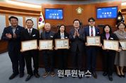 (원투원뉴스) 오산시의회는 6일 본회의장에서 ‘오산시의회 의장 표창 시상식’을 열고 지역 발전과 주민 자치 활성화에 헌신한 위원 8명에게 의장 표창을 수여했다. 수상자는 ▲중앙동 최하늘 위원 ▲대원1동 전해자 위원 ▲대원2동 권옥선 위원▲남촌동 박순용 위원 ▲신장1동 정정숙 위원 ▲신장2동 이선자 위원 ▲세마동 남호석 위원 ▲초평동 이주왕 위원 등 모두 8명으로 주민과 행정을 잇는 가교로서 지역사회 발전에 기여한 공로를 인정받았다. 이상복 의장은 인사말을 통해 “지역 곳곳에서 시민들의 더 나은 삶을 위해 헌신해 오신 여러분이야말로 진정한 풀뿌리 민주주의의 주인공”이라고 강조했다. 이어 “그동안 현장에서 묵묵히 책임을 다해준 주민자치위원들의 노고에 깊이 감사하다”며 “앞으로도 변함없이 주민자치위원회가 걷는 길이 오산의 내일을 밝히는 힘이 되길 바란다”고 말했다. 이 의장은 “오산시의회는 주민의 참여와 자치가 더욱 활짝 꽃필 수 있도록 든든한 지원군이 될 것”이라고 덧붙였다.