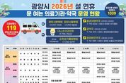 (원투원뉴스) 광양시는 설 명절 연휴 기간 시민과 귀성객들이 안전하고 편안한 명절을 보낼 수 있도록 2월 14일부터 18일까지 5일간 ‘설 연휴 종합상황실’을 운영한다고 밝혔다. 이번 종합상황실은 ▲총괄반 ▲생활민원기동반 ▲재난상황반 ▲진료대책반 ▲일반민원처리반 등 총 5개 반, 하루 평균 39명이 근무하는 체계로 연휴 기간 총 195명의 인력을 투입해 운영되며, 각종 비상 상황에 신속하고 체계적으로 대응해 연휴 기간 발생할 수 있는 생활 불편을 최소화할 계획이다. 먼저 총괄반은 종합상황실 운영 전반을 총괄하며 각 반의 상황을 종합 관리하고, 연휴 기간 상황 유지와 신속한 의사결정을 담당한다. 생활민원기동반은 환경·도로·교통·수도·쓰레기 수거·가로등 등 시민 일상과 직결된 민원을 집중 처리해 연휴 중 불편 사항을 신속히 해소하며, 재난상황반은 자연재해와 각종 긴급 상황에 대비해 24시간 대응 체계를 유지하며 시민 안전 확보에 만전을 기한다. 특히 진료대책반은 연휴 기간 지역 내 응급의료기관과 긴밀히 협력해 24시간 응급실과 당번 의료기관·약국 운영 체계를 유지함으로써 갑작스러운 응급 상황에도 신속한