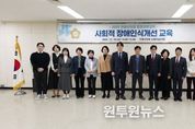 (원투원뉴스) 안양시의회는 12월 19일 시의회 소회의실에서 시의원과 사무국 직원을 대상으로 사회적 장애인식개선 교육을 실시했다. 이번 교육은 '장애인복지법'에 따른 법정의무교육으로, 장애인에 대한 사회적 편견과 차별을 해소하고 상호 존중하는 포용적인 공직 문화를 조성하기 위해 마련됐다. 교육에 참석한 시의원과 직원들은 진지한 태도로 교육에 임하며 전 과정을 수료했다. 이날 교육에는 바꿈교육원 원장이자 (사)장애인인권센터 교육 강사로 활동 중인 이미영 강사가 초빙돼, ‘서로의 다름을 존중하고 함께하는 사회를 꿈꾼다’를 교육 목표로 장애의 정의와 유형에 대한 이해, 차별 금지의 중요성, 장애 인식 전환 등에 대해 강의했다. 박준모 의장은 “이번 교육이 의원과 직원들이 장애에 대한 올바른 인식을 갖고 공직자로서의 기본 역량을 강화하는 계기가 되기를 바란다”며 “앞으로도 장애인이 차별받지 않고 시민 모두가 조화롭게 어우러지는 건강한 안양시를 만들기 위해 의회 차원에서 지속적으로 노력하겠다”고 밝혔다.