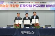 (원투원뉴스) 고흥군은 농업 생산성을 유지하면서 태양광 발전을 병행해 농가 소득을 높이는 ‘영농형 태양광 표준모델’ 연구개발을 위해 민·관·연 협력체계를 구축했다고 밝혔다. 군은 지난 12월 19일 군청 팔영산홀에서 (재)녹색에너지연구원, ㈜유에너지(대표 최태원)와 함께 업무협약을 체결하고 ‘고흥형 영농형 태양광 표준모델’ 연구개발 추진을 위한 업무협약을 체결했다. 이번 연구 개발 사업은 정부가 영농형 태양광을 농촌의 새로운 발전 동력으로 육성하기 위해 국비 30억원을 투입한 국가 정책사업의 일부로, 2026년부터 2033년까지 총 8년(과제수행 3년, 성과유지 5년)간 고흥만 간척지 인근에서 실증 연구가 진행될 예정이다. 이번 연구개발의 핵심은 고흥의 기후환경과 토양 특성에 최적화된 ‘고흥형 영농형 태양광’ 모델을 개발하는 데 있다. 단순한 에너지 생산을 넘어 고흥의 주요 작물 생육에 최적화된 설비 구조와 광환경을 분석하여 농업의 지속가능성을 확보하는 것이 목표다. 협약에 따라 ▲고흥군은 실증단지 부지 제공과 배전선로 설치 등 행정 지원을 총괄하고 ▲주관기관인 ㈜유에너지는 설비 설계