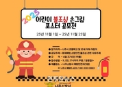 (원투원뉴스) 나주소방서는 ‘2025년 불조심 강조의 날’을 맞아 화재 위험이 증가하는 겨울철을 앞두고 시민들의 화재예방 의식을 높이기 위한 홍보 활동에 나섰다. 특히 어린이의 눈높이에서 화재예방의 중요성을 이해하고 창의성으로 표현할 수 있도록 ‘제78회 어린이 불조심 포스터 공모전’을 개최한다고 밝혔다. 나주소방서는 공모전에 앞서 최근 스프링클러 미설치 공동주택 인근 9개소 초등학교를 대상으로 소방안전교육을 실시하여 어린이들의 화재 대피 및 안전의식 제고에 힘써왔다. 이번 공모전은 관내 초등학교 및 12세 이하 어린이를 대상으로 하며 11월 1일부터 11월 25일까지 진행된다. 공모주제는 ‘화재예방과 안전의 중요성을 표현한 내용’으로 4절크기의 손그림 포스터 1인1점만 출품할 수 있다. 올해는 전라남도 주관으로 진행되며 도지사상과 함께 다양한 경품이 수여될 예정이다. 접수된 작품은 심사를 거쳐 우수작을 선정하고 최우수작은 나주소방서 대표로 본서대회에 출품된다. 작품 제출은 11월 25일까지 나주소방서 예방안전과에 직접 방문하거나 우편으로 접수하면 된다. &nb