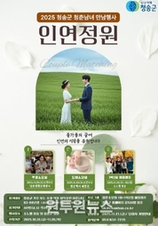 (원투원뉴스) 청송군은 오는 29일부터 30일까지 1박 2일간 지역 청춘 남녀들이 함께 어울리며 인연을 쌓을 수 있는 청춘남녀 만남 행사 ‘인연정원’을 청송군 일원에서 개최한다. 이번 행사는 자연과 예술 속에서 청춘의 인연을 이어가는 교류의 장으로, 지역 내 미혼 남녀들이 부담 없이 참여해 자연스럽게 소통하고 새로운 인연을 만들어갈 수 있는 특별한 기회를 제공하고자 마련됐다. 행사는 청송사과 쿠킹클래스와 청송백자 도예체험으로 구성된 두 개의 소모임을 시작으로, 주산지 데이트, 로테이션 매칭 토크, 매칭 이벤트 등 청춘의 감성을 더한 다채로운 단체 프로그램으로 이어질 예정이다. 참가 대상은 청송군에 거주하거나 관내 직장에 재직 중인 미혼 남녀(1983~2000년생)이며, 접수 상황에 따라 경북도 내 참가자로 범위를 확대할 계획이다. 모집 인원은 총 40명(남녀 각 20명)이며, 11월 20일까지 이메일을 통해 신청할 수 있다. 윤경희 청송군수는 “이번 행사는 청춘 남녀들이 자연과 문화가 어우러진 청송의 매력을 느끼며 인연을 쌓을 수 있는 뜻깊은 시간이 될 것”이라며, “참가자들이 즐겁고