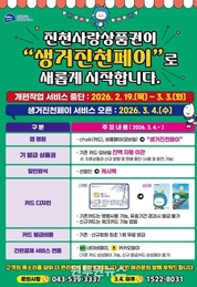(원투원뉴스) 충북 진천군은 진천사랑상품권 시스템을 전면 개편해 ‘생거진천페이’로 오는 3월 4일부터 서비스를 재개한다고 6일 밝혔다. 이번 개편은 지역사랑상품권의 사용 편의성을 높이고 운영 효율성을 강화하기 위한 조치로, 운영 대행사가 기존 한국조폐공사·한국간편결제진흥원에서 코나아이로 변경된다. 이에 따라 시스템 전환, 데이터 이관 작업이 진행되는 2월 19일부터 3월 3일까지는 서비스가 일시 중단된다. 해당 기간에는 상품권 결제, 충전, 신규 발급 등 모든 이용이 제한된다. 서비스는 오는 3월 4일부터 정상 운영되며, 이용자는 변경된 ‘생거진천페이’ 앱을 내려받아 회원 등록 후 사용할 수 있다. 기존 카드와 모바일 상품권의 잔액 정보는 앱 설치와 회원 등록을 완료하면 자동으로 이관된다. 이번 개편의 주요 내용으로는 먼저, 기존에 카드형(chak)과 모바일형(비플페이)으로 이원화해 운영하던 앱을 ‘생거진천페이’로 통합하고, 상품권 명칭도 함께 변경한다. 또한 지류식 상품권은 부정 유통 위험 증가에 따라 2월 19일부터 신규 발행과 판매가 중단된다.