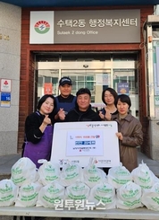 (원투원뉴스) 구리시 수택2동 행정복지센터는 지난 5일 남양 시장 골목상인회가 정성껏 준비한 반찬 20세트를 관내 홀로 어르신 20가구에 전달하며 ‘사랑의 반찬 나눔’을 실천했다고 밝혔다. 이번 나눔 활동은 경제적으로나 정서적으로 어려움을 겪고 있는 어르신들께 따뜻한 위로와 관심을 전하기 위해 마련된 것으로, 상인회 회원들은 돼지고기볶음, 어묵볶음 등 밑반찬 3종을 직접 조리해 위생적으로 포장한 후 가정에 전달했다. 최경진 남양시장 골목상인회장은 “시장 상인들이 마음을 모아 준비한 반찬으로 어르신들께 따뜻한 한 끼를 전할 수 있어 뜻깊다”라며 “앞으로도 지역과 함께하는 상인회가 될 수 있도록 지속적인 나눔 활동을 이어가겠다”라고 말했다. 반찬 나눔에 참여한 상인들도 “평소 시장을 찾아주시는 지역 주민들께 감사의 마음을 전하고 싶었다”라며 “작은 정성이지만 어르신들께 도움이 되기를 바란다”라고 전했다. 남양시장 골목상인회는 정기적인 반찬 나눔, 주거 취약계층 주거환경개선사업 등 다양한 지역사회 공헌 활동을 통해 지역과 상생하는 전통시장으로 자리매김해 나갈 계획이다.