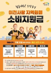 (원투원뉴스) 이천시는 경기침체로 어려움을 겪는 소상공인을 돕고 지역 내 소비를 촉진하기 위해 11월 10일부터 11월 30일까지 ‘힘을 내요! 소상공인’ 이천사랑 지역화폐 소비지원금 행사를 본격 시행한다고 밝혔다. 이번 행사는 경기이천사랑 지역화폐(본인 충전 금액에 한함)로 결제하는 시민에게 결제금액의 25%(1인당 최대 5만 원 한도)를 즉시 캐시백(페이백) 형태로 지급하는 행사이며, 예산 소진 시까지 선착순으로 운영되어 조기 마감될 수 있다. 지급된 캐시백은 지급일로부터 2개월간 사용 가능하고, 사용기한이 지나면 자동 소멸한다. 김경희 시장은 “이번 소비지원금 행사를 통해 지역 내 소비 확대 및 소상공인 매출 증대를 도모하여, 지역경제에 활력을 불어넣는 계기가 될 것으로 기대한다”라며, “지역경제 활성화를 위해 시민 여러분의 적극적인 지역화폐 사용과 행사 참여를 부탁드린다”라고 전했다.