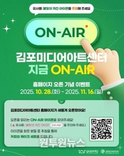 (원투원뉴스) 김포시가 시민의 미디어 접근성을 높이고 디지털 소통을 강화하기 위해 김포미디어아트센터(GMAC) 홈페이지를 10월 28일 정식 오픈했다고 밝혔다. 김포미디어아트센터 홈페이지는 ▲교육·체험 ▲전시·행사 ▲센터 소식 ▲아카이브 등 주요 사업과 기능을 한곳에서 이용할 수 있도록 정보를 제공한다. 특히 시민 누구나 쉽게 접근하고 참여할 수 있도록 사용자 중심의 인터페이스(UI/UX)를 적용했으며, 모바일 환경에서도 동일한 이용 경험을 제공할 수 있도록 반응형 웹으로 설계해 편의성을 높였다. 또한 이용자의 편의를 한층 강화하기 위해 김포문화재단 홈페이지 계정과 연동한 통합 로그인 시스템을 구축했다. 이를 통해 한 번의 회원 가입만으로 재단과 센터의 모든 서비스를 이용할 수 있으며, 교육과 전시 일정을 손쉽게 확인하고 온라인으로 신청할 수 있다. 한편 정식 홈페이지 오픈을 기념해 센터 회원이라면 누구나 참여할 수 있는 오픈 기념 이벤트도 함께 진행된다. 참여 방법은 김포문화재단 통합 회원으로 가입한 후, 공지사항 내 이벤트 안내에 따라 센터 홈페이지 곳곳에 등장하는 'ON-AIR' 아이콘을 찾아