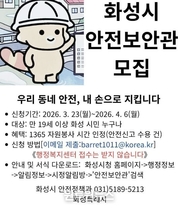 (원투원뉴스) 화성특례시는 지역 내 안전문화 확산과 생활 속 위험요소의 사전 발굴·제거를 위해 안전보안관 145명을 공개 모집한다고 23일 밝혔다. 모집 기간은 3월 23일부터 4월 6일까지며, 공고일 기준 주민등록상 화성시에 거주하는 시민이면 누구나 지원할 수 있다. 안전보안관의 주요 활동은 ▲안전신문고 앱을 활용한 7대 안전무시 관행 및 생활 속 안전위반 행위 신고 ▲지역행사 및 축제 안전점검 지원 ▲안전문화 캠페인 참여 등이다. 안전보안관은 위촉일로부터 2년간 활동하며, 제안사항이 수용될 경우 ‘1365 자원봉사포털’을 통해 봉사시간을 인정받는다. 참여를 희망하는 시민은 화성시청 홈페이지 ‘시정알림방’ 게시판에서 ‘안전보안관’을 검색해 신청서를 내려받아 작성 후 안전정책과 안전문화교육팀 전자우편으로 제출하면 된다. 김영준 안전정책과장은 “시민이 직접 참여하는 안전관리 체계는 지역 안전 수준을 높이는 중요한 기반”이라며 “일상 속 위험요소를 세심하게 살피고 개선해 나가는 활동을 통해 보다 촘촘한 안전환경을 조성해 나가겠다”고 말했다.