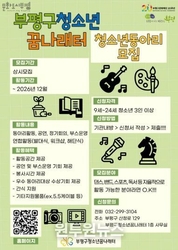 (원투원뉴스) 부평구청소년꿈나래터는 ‘2026년도 청소년자율동아리’를 상시 모집한다고 23일 밝혔다. 이번 모집은 부평구 청소년의 자율적인 성장을 지원하고 건전한 여가문화를 확산하기 위해 추진되며, 부평구에 거주하거나 재학 중인 9~24세 청소년이면 누구나 참여할 수 있다. 문화체험, 미디어, 사회참여, 4차 산업 등 다양한 주제로 제한 없이 동아리를 자유롭게 구성할 수 있다. 선정된 동아리에는 ▲활동공간 제공 ▲공연 및 부스 운영 기회 ▲봉사시간 인정 ▲우수 동아리 수상 기회 ▲동아리 활동 물품 지원 등의 혜택이 제공될 예정이다. 배재석 부평구청소년꿈나래터 센터장은 “다양한 동아리 활동을 통해 청소년들의 건강한 문화생활을 적극 지원하겠다”며 “자신의 재능을 발견하고 싶은 청소년들의 많은 관심과 참여를 바란다”고 말했다. 청소년 동아리 모집과 관련된 자세한 사항은 전화로 문의하거나, 부평구청소년꿈나래터 누리집 및 카카오톡 채널에서 확인할 수 있다.