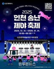 (원투원뉴스) 인천광역시는 오는 12월 31일, 한 해의 마무리와 새해의 시작을 시민과 함께 기념하기 위해 ‘2025 인천 송년제야 축제’를 인천문화예술회관 야외광장에서 개최한다고 밝혔다. 이번 송년제야 축제는 시민들이 직접 참여하고 체감할 수 있는 연말연시 대표 축제로, 오후 9시부터 자정 이후까지 공연·체험·공식행사가 연이어 진행되며 도심 속 축제 분위기를 한껏 끌어올릴 예정이다. 행사는 시민참여 무대를 시작으로, 인천 지역 예술단체인 구각노리, 루나플로우, 성악가 윤소정의 공연이 이어지며, 초청 가수 정동하, 퍼포맨즈가 무대에 올라 연말의 열기를 더한다. 아울러 행사장 곳곳에는 AI 타로 체험, 소원나무 메시지, 윷놀이 등 시민 누구나 즐길 수 있는 체험 프로그램과 함께, 높이 7m 규모의 대형 미디어아트 포토존이 설치돼 시민들에게 특별한 추억을 선사할 계획이다. 자정 이후에는 불꽃쇼가 펼쳐지며 새해의 시작을 화려하게 장식한다. 특히, 2026년 새해를 알리는 제야의 종 타종식은 시민과 함께하는 상징적 행사로 진행된다. 시민상·문화상 수상자, 국내 유망 체육인, 자원봉사자, 소방관·경찰관, 지