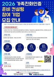 (원투원뉴스) (재)인천여성가족재단 인천일생활균형지원센터가 2026년도 가족친화인증 준비 컨설팅 참여 기업 모집을 시작한다. 이번 사업은 가족친화경영 도입을 희망하거나 인증을 준비 중인 기업·기관을 대상으로, 인증 절차 전반을 보다 체계적으로 준비할 수 있도록 맞춤형 컨설팅을 지원하는 프로그램이다. 모집은 2026년 2월 10일부터 예산 소진 시까지 진행되며, 신청은 인천 일생활균형지원센터 홈페이지를 통해 가능하다. 센터는 기업의 준비 수준과 여건을 고려해 진단부터 개선 방향 설정, 서류 준비 및 심사 대응까지 단계별로 지원해 참여 부담을 낮추고 실질적인 제도 정착을 돕겠다는 계획이다. 컨설팅 주요 내용은 ▲가족친화제도 운영 현황 점검 및 개선 과제 도출 ▲지표 기반 준비 전략 수립 ▲내부 규정·운영체계 정비 자문 ▲인증 신청 서류 및 증빙자료 구성 지원 ▲심사 대응(현장·인터뷰 등) 준비 지원 등으로 구성된다. 특히 초기 도입 기업의 어려움을 줄이기 위해, 현장 상황에 맞춘 실행 중심의 가이드를 제공하는 데 초점을 맞추어 진행한다. 성평등가족부 주관의 가족친화인증을 획득하