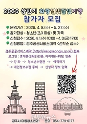 (원투원뉴스) 경주시는 지역 청소년과 가족이 함께 경주의 문화유산을 체험할 수 있는 야간 탐방 프로그램 ‘화랑별빛달빛기행’ 참가자를 모집한다고 23일 밝혔다. ‘화랑별빛달빛기행’은 문화유산해설사와 함께 저녁 시간대 지역의 문화유산을 둘러보며 경주의 역사와 문화를 생생하게 체험하는 가족 참여형 현장 프로그램이다. 오는 4월 8일부터 5월 27일까지 총 10회 운영되며, 수요일 8회, 토요일 2회 일정으로 진행된다. 참가 대상은 초등학교 3학년 이상 청소년과 가족이며, 신청은 4월 1일 오전 10시부터 4월 3일 오후 5시까지 받는다. 모집인원은 탐방 코스별 20명으로, 경주공공서비스예약 홈페이지를 통해 선착순으로 접수한다. 이번 프로그램은 가족이 함께 문화유산을 걸으며 소통하는 시간을 마련하고, 청소년들이 지역의 역사와 문화를 보다 친근하게 이해할 수 있도록 기획됐다. 시는 이를 통해 청소년의 지역 정체성과 문화유산에 대한 관심을 높이는 계기가 될 것으로 기대하고 있다. 김유경 경주시 아동청소년과장은 “청소년들이 지역의 문화유산을 직접 보고 느끼며 자연스럽게 역