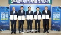 (원투원뉴스) 전북특별자치도가 인공지능과 바이오산업을 융합한 지역 신성장 동력 확보에 나섰다. 도는 6일 도청에서 한국기계전기전자시험연구원, 범부처통합헬스케어협회, 전북대학교, 원광대학교 등 5개 기관과 'AI 기반 바이오 산업 육성'을 위한 업무협약을 체결했다. 이날 협약식에는 김관영 도지사를 비롯해 안성일 한국기계전기전자시험연구원장, 심기준 범부처통합헬스케어협회장, 양오봉 전북대 총장, 박성태 원광대 총장이 참석했다. 이번 협약을 통해 참여 기관들은 ▲AI 기반 바이오 산업 생태계 조성을 위한 사업 발굴과 공동 추진 ▲AI 기술을 활용한 연구·산업 기반 구축 ▲산·학·연 협력을 통한 전문인력 양성 및 산업화 지원 등의 협력 체계를 구축해 나갈 계획이다. AI 기반 바이오 산업의 신뢰성과 안전성, 사이버보안 지원체계 구축에도 힘을 쏟는다. 도는 이번 협약을 계기로 AI와 바이오산업이 융합된 지능형 바이오 생태계를 조성해 지역 경제의 미래 먹거리로 발전시킨다는 방침이다. 한국기계전기전자시험연구원은 기계·전기·전자·의료 등 전 분야 시험인증 전문기관으로 약 700명의 인력을 보유하고 있다. 범부처통합
