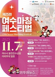 (원투원뉴스) 여수시는 오는 11월 7일 오후 6시 웅천친수공원에서 대한민국 3대 관악제 중 하나인 ‘여수마칭페스티벌’을 개최한다. 올해로 25회를 맞는 이번 축제에는 9개 마칭밴드가 참여해 수준 높은 음악과 관악 퍼포먼스를 선보이며 시민과 관광객 모두에게 특별한 감동을 선사할 예정이다. 축제는 낮부터 다양한 사전 프로그램과 함께 진행된다. 오후 12시 30분 여수시청에서 시작되는 ‘찾아가는 마칭쇼’를 시작으로 오후 5시 웅천친수공원 일대에서는 ‘거리퍼레이드’가 펼쳐진다. 이어 오후 6시에는 웅천친수공원 특설무대에서 본 공연이 진행된다. 또한 공연과 더불어 플리마켓, 체험행사 등 부대 프로그램도 운영돼 공연 관람뿐만 아니라 문화 체험을 함께 즐길 수 있는 축제의 장이 마련될 예정이다. 여수시 관계자는 “여수밤바다를 배경으로 펼치는 야외 관악 공연이 여수의 매력을 더 크게 느낄 수 있는 특별한 경험이 될 것"이라며 “많은 시민과 방문객이 함께 참여해 즐기며 화합하는 축제가 되길 바란다”고 말했다.