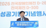 (원투원뉴스) 12년 만의 전국체전, 제주 최초의 전국장애인체전을 300일 앞두고 제주월드컵경기장 광장에 카운트다운 홍보탑이 불을 밝혔다. 제주특별자치도는 20일 이곳에서 ‘D-day’ 기념행사를 열고 본격적인 대회 준비 시동을 걸었다. 범도민 지원위원회(591명) 출범 선언과 서포터즈 다짐이 이어지며, 도민과 함께 만드는 체전이 시작됐음을 공식화했다. 이날 행사에는 오영훈 제주도지사를 비롯해 이진숙 대한체육회 부회장, 이희룡 대한장애인체육회 사무총장, 이상봉 도의회 의장, 김광수 도교육감 등 주요 인사와 범도민 지원위원회, 서포터즈 등 200여 명이 참석했다. 행사는 카운트다운 홍보탑 제막식으로 시작됐다. 참석자들이 함께 카운트다운을 외치는 가운데 주요 내빈들이 홍보탑에 불을 밝히자‘전국장애인체전 D-265일, 전국체전 D-300일’이 점등됐다. 이 홍보탑은 앞으로 도내 곳곳에서 두 대회까지 남은 날을 알리며 체전 분위기를 확산시킨다. 오영훈 지사는 인사말씀을 통해 “제주가 첫 전국장애인체전을 전국체전보다 먼저 개최하는 것은 최근 선언한 평화·인권 헌장의 가치를 실천하는 것”이라며
