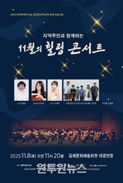 (원투원뉴스) 단순한 공연을 넘어 음악을 통해 세대와 지역이 함께 성장하고 소통하는 '지역주민과 함께하는 11월의 힐링 콘서트'가 오는 8일 오전 11시 20분 김제문화예술회관 대공연장에서 펼쳐진다. 이번 공연에서는 드림필하모닉오케스트라 35인과 중창단‘앙상블 노빌레’, 그리고 김제청소년오케스트라가 함께하며 세대와 지역이 어우러지는 풍성한 무대를 선사할 예정이다. 특히 김제청소년오케스트라 바이올린 초급반 학생들은 귀여운 선율의‘작은별’과‘할아버지의 낡은시계’를 협연하며 그동안의 배움을 무대에서 직접 선보인다. 또한 오케스트라 단원인 이채하 학생이 모차르트 피아노‘콘체르토 3악장’을, 바이올린 박다빈 학생이 비발디‘콘체르토 F’단조를 연주해 청소년들의 열정과 성장을 보여 줄 예정이며, 이와 더불어 ‘앙상블 노빌레’는 감동적인 하모니로‘Nella Fantasia’등을 선사하며 공연의 감동을 더한다. 클래식의 전통적인 아름다움과 현대적 감성이 어우러진 프로그램으로 남녀노소 누구나 즐길 수 있는 음악적 힐링의 시간을 선사하고, 특히 오케스트라와 합창, 청소년 연주자들의 협연이 함께하는 이번 무대는 지역 예