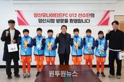 (원투원뉴스) 양산시는 지난 3일 시청 3층 상황실에서 제55회 전국소년체육대회 경상남도 대표 선발전을 앞두고 훈련에 매진 중인 ‘양산유나이티드FC U12’ 선수단을 초청해 격려 간담회를 가졌다. 이날 간담회에는 양산유나이티드FC 배익두 대표이사와 조용기 감독을 비롯해 오지훈(부산 좌산초), 박라현(가촌초), 박승우(금송초), 강준서(동산초), 유현우(황산초), 김가인(금오초) 등 팀을 대표하는 12세 이하 유망주 선수 6명이 참석했다. 이번 간담회는 지역을 대표해 구슬땀을 흘리고 있는 어린 선수들의 사기를 북돋우고, 현장의 목소리를 청취하기 위해 마련됐다. 양산유나이티드FC U12팀은 현재 다가오는 전국소년체전 경남 대표 선발전을 대비해 강도 높은 훈련을 이어가고 있다. 지난 2021년 법인화와 함께 공공스포츠클럽으로 출범한 양산유나이티드FC는 짧은 역사에도 불구하고 괄목할 만한 성과를 거두며 영남권 최고의 유소년 축구 명문으로 자리 잡았다. 주요 성과로는 ▲경남 초·중 종합체육대회 6회 연속(2020~2025) 우승 ▲2년 연속(2023~2024) 전국소년체육대회 경남 대표 선발 등