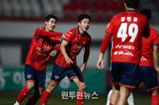 (원투원뉴스) 끝까지 포기하지 않고 싸운 끝에 소중한 승점 1점을 쌓았다. 김천상무프로축구단(대표이사 이재하)이 3월 17일 화요일 19시 30분, 김천종합운동장에서 열린 ‘하나은행 K리그1 2026’ 4R 홈경기에서 광주FC(이하 광주)와 1대 1로 비겼다. 이른 시간 퇴장으로 수적 열세에 처한 김천상무는 선제골을 내줬지만, 후반 추가시간 극적인 동점골로 무승부를 기록했다. 김천상무는 4-4-2 포메이션을 가동했다. 백종범이 골키퍼 장갑을 꼈다. 백포는 박철우, 이정택, 김현우, 김태환이 구축했다. 중원에서는 김이석과 박태준이 호흡을 맞추었다. 양쪽 날개에는 홍윤상과 전병관이 자리했다. 이어 이건희와 이상헌이 최전방에 포진했다. 퇴장 변수, 10명으로 버티며 전반 0대 0 마무리 김천상무는 경기 시작과 함께 아쉬움을 삼켰다. 전반 2분, 수비 진영에서 넘어온 공을 이건희가 상대 수비와 경합하며 떨어뜨렸다. 뒤에서 달려오던 홍윤상이 이를 마무리했으나, 슈팅이 뜨고 말았다. 기회 뒤에 바로 변수가 발생했다. 전반 7분, 김천상무가 VAR 끝에 퇴장으로 1명을 잃으며 수적 열세에 처하게 됐