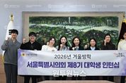 (원투원뉴스) 서울특별시의회 최호정 의장(국민의힘, 서초4)은 26일 의회 본관 의장접견실에서'제8기 겨울방학 대학생 인턴 간담회'를 개최하고, 청년들과 서울시 정책 현안, 일·가정 양립 고민 등을 주제로 진솔한 대화를 나눴다. 이번 간담회에는 대학생 인턴 7명이 참가했으며, 각자가 수행 중인 정책 연구 주제와 활동 소감을 공유했다. 참석한 대학생 인턴들은 본인의 전공과 관련된 정책 연구를 소개하며 활동 경험을 공유했다. 주요 연구 주제는 △서울시와 2개 자치구의 기후 위기 대응 △서울시 교육환경 변화 대응 △서울시 폐교 활용과 관련된 정책 방안 △서울시 축제 육성 및 활성화 방안에 대한 연구 △한강 이용정보 통합 앱 구축 및 활용방안 연구 △우리나라 정치·사회 갈등에 대한 대학생들의 인식 및 갈등 연구 등이다. 인턴들은 “정책이 논의되고 결정되는 과정을 가까이에서 직접 경험할 수 있는 매우 뜻깊은 시간이었다”고 소감을 밝혔다. “특히 정책결정의 무게와 공공부문의 책임을 현장에서 체감했다. 향후 진로와 사회적 역할에 대해 깊이 고민해보는 계기가 됐다”고 전했다. 최호정 의장은 “짧은 기간 동안이지만 의회의 실