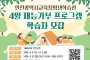 (원투원뉴스) 인천광역시교육청평생학습관은 오는 3월 23일부터 시민 강사의 전문 지식과 경험을 지역 주민과 공유하는 ‘4월 재능기부 프로그램’ 학습자를 모집한다. 이번 프로그램은 시민이 직접 강사로 나서 지역사회와 함께 전문성을 나누는 참여형 평생학습 과정으로, 4월 운영 강좌는 ‘쏙쏙 클래식’, ‘치매예방 힐링 퍼즐’, ‘한중 지명에 얽힌 역사문화와 지혜’, ‘요들송 배우기’ 등 4개 과정을 마련했다. 강좌는 4월 8일부터 운영되며, 수강 신청은 23일 오전 10시부터 평생학습관 누리집에서 선착순 진행된다. 자세한 사항은 누리집 공지사항을 확인하거나 평생교육부로 문의하면 된다.