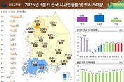(원투원뉴스) 국토교통부와 한국부동산원(원장 손태락)은 '25년 3분기 지가변동률 및 토지거래량을 발표했다. ★ 지가변동률 '25년 3분기 전국 지가는 0.58% 상승했다. 상승폭은 '25년 2분기(0.55%) 대비 0.03%p 확대, '24년 3분기(0.59%) 대비 0.01%p 축소된 것으로 나타났다. '25년 9월 지가변동률은 0.20%로, '25년 8월(0.19%) 대비 0.01%p, '24년 9월(0.19%) 대비 0.01%p 높은 수준으로 나타났다. (지역별) '25년 3분기 지가변동률은 수도권(0.74% → 0.80%)은 '25년 2분기 변동률 대비 높은 수준, 지방권(0.22% → 0.19%)은 낮은 수준을 보였다. (시·도) 17개 시·도 중 서울(1.07%)이 전국 평균(0.58%)을 상회했다. (시·군·구) 서울 용산구 1.96%, 서울 강남구 1.68%, 서울 서초구 1.35% 등 252개 시군구 중 40개 시군구가 전국 평균을 상회했다. 또한, 252개 시군구 중 199개 시군구가 0.00% ~ 0.80% 수준을 나타내었으며, 주로 수도권 지역을 중심