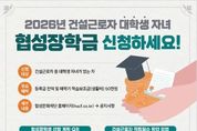 (원투원뉴스) 건설근로자공제회(이사장 직무대행 권혁태)와 협성문화재단(이사장 박석귀)은 건설근로자의 대학생 자녀 학업 지원을 위해 ‘2026년 신규 협성장학생’을 선발한다. 지원대상은 건설근로자공제회에 등록된 건설근로자로 총 적립일수가 600일 이상이고, 2025년도 근로내역은 최소 100일이다. 건설근로자의 자녀 가운데 국내 4년제 대학 신입생과 2026년 기준 2~3학년 재학생을 대상으로 장학생을 모집한다. 선발 인원은 20명 내외다. 제출서류, 심사기준은 협성문화재단 홈페이지 내 공지사항을 통해 확인할 수 있다. 접수기간은 오는 12월 15일부터 내년 1월 5일까지이며, 협성문화재단에 제출서류를 등기우편으로 제출해야 한다. 서류합격자는 2026년 1월 26일 발표되며, 면접은 2월 2일부터 6일까지 진행된다. 최종 합격자는 2월 9일 재단 홈페이지에 게시되고, 2월 12일 장학증서 수여식이 열릴 예정이다. 장학생에게는 등록금 전액과 함께 매 학기 50만원의 학습보조금이 지원된다. 또한 인문학 강의, 독서 프로그램, 해외 탐방 및 봉사 활동 등 다양한 장학 프로그램 참여 기회도 제공된다. 장학생은 매 학기