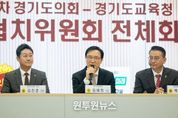 (원투원뉴스) 경기도교육청과 경기도의회가 2026년도 본예산 편성 과정에서 총 2,000억 원 규모의 협치 예산을 공동으로 추진하기로 합의하며 교육 협력의 새로운 전기를 열었다. 경기도교육청은 5일 도의회 예담채에서 ‘경기도의회-경기도교육청 제1차 여야정 협치위원회 전체회의’를 개최했다. 이번 회의는 도의회와 교육청이 함께 2026년도 협치 예산 합의문에 서명하며 지속 가능한 교육정책 협력체계를 공고히 하고자 마련됐다. 공동의장 3인은 합의문에 서명하며 교육청과 도의회 간 협치의지를 공식화했다. 합의를 통해 ▲현장 중심 학교운영 ▲교육행정 개선 ▲미래교육 전환 ▲교육환경 개선 ▲맞춤형 교육확대 등 5대 분야 총 2,000억 원 규모 협치 예산을 공동 추진하기로 했다. 임태희 교육감은 인사 말씀을 통해 “여야정 협의가 늘 화두로 떠오르는데 실제로 결실은 많치 않다”며 “이런 점에서 대단히 성숙하고 건강한 도정의 협치 모습을 보이는 현장이라고 생각한다”고 말했다. 이어 “최종적으로 학생과 교육 현장의 학부모, 교직원들을 위해 앞으로 후속 조치를 함께 해주시길 바란다”며 “이견이