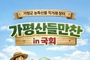 (원투원뉴스) 설 명절을 앞두고 가평군의 우수 농특산물을 한자리에서 만날 수 있는 직거래 장터가 국회에서 열린다. 소비자와 생산자를 직접 연결하는 이번 행사는 도시민들에게 가평 농산물의 우수성과 가평의 관광자원까지 함께 알리는 자리가 될 전망이다. 가평군은 오는 11일 오전 10시부터 오후 3시까지 국회 소통관 앞마당에서 ‘가평산들만찬마켓 in 국회’ 농특산물 직거래 장터를 개최한다고 밝혔다. 이번 행사는 김용태 국회의원실이 주최하고 가평군이 주관한다. 직거래 장터는 가평군의 청정 자연환경에서 생산된 신선한 먹거리를 합리적인 가격에 선보여 도시와 농촌이 상생하는 직거래를 활성화하기 위해 마련됐다. 동시에 가평의 주요 관광지와 축제, 고향사랑기부제 홍보도 함께 진행해 지역경제 활성화를 도모한다. 행사장에는 10동 내외의 몽골텐트에 판매·홍보 부스를 설치해 가평에서 생산된 농특산물 직거래 행사와 관광·축제 홍보가 이뤄진다. 현장에서는 참여 농가들이 직접 생산한 참송이버섯과 송화버섯, 배, 잣, 가평 한우를 비롯해 쌀쿠키, 오디청, 오디잼, 수제 마늘빵, 잣 만주 등 가공식품과 차류 제품까지 폭넓게 준비된다. 일부