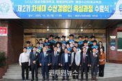 (원투원뉴스) 경상국립대학교 해양과학대학 해양수산미래교육원은 10월 20일 ‘제2기 통영시 차세대수산경영인 육성과정’ 수료식을 개최했다. 이번 수료식에는 수료생 22명을 비롯해 이정석 해양과학대학장, 허대양 통영시 부시장, 정두한 통영수협 조합장, 김태형 멍게수하식수협 조합장 등 50여 명이 참석했다. 통영시 차세대수산경영인 육성과정은 6월 19일부터 9월 4일까지 11주간 진행됐다. 교육은 수산업의 생산·가공·유통 과정에 활용가능한 정보통신기술(ICT) 첨단 기술과 블루푸드테크, 고차가공식품개발, 기후변화, 리더십 등 최신 트렌드를 소개하는 이론 교육과 실습 교육, 현장 견학 교육이 병행됐다. 이정석 해양과학대학장은 “기후변화와 경기침체 등으로 수산업이 어려움을 겪고 있지만, 이번 교육과정에서 습득한 전문 지식과 도전 정신을 바탕으로 지역 수산업을 견인하는 지도자로 성장하길 기대한다.”라며 “해양과학대학은 지역 수산업 발전과 수산 분야 전문인력 양성을 위해 더욱 힘쓰겠다.”라고 말했다. 통영시 차세대수산경영인 육성과정은 통영시의 위탁을 받아 경상국립대학교 해양과학대학에서 운영하는 현장