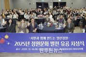 (원투원뉴스) 수원특례시는 18일 팔달문화센터 예당마루홀에서 ‘2025년 정원문화 발전 유공 시상식’을 열었다. 정원문화 발전에 기여한 시민과 단체 등에 수원시장상(47개)과 수원시의회 의장상(7개)을 수여했다. 시상은 표창장·감사패 수여, 시민정원 경연대회, 베스트 관리상, 올해의 정원인상 등 분야별로 진행됐다. 지난 10월 효원공원에서 열렸던 ‘2025년 수원시 시민정원 경연대회’ 수상팀들을 시상했다. 하나의 물방울이 만들어내는 무한한 생명의 파장을 표현한 ‘완뚝원정대’의 ‘리플(ripple) 가든’이 대상을 받았다. 어린 꽃이 꿈꾸는 산의 이미지를 담은 ‘진달래동산 꽃뫼’ 팀의 ‘어린 꽃이 꿈꾸는 뫼(산)’이 최우수상, 빛과 생명의 흐름을 표현한 ‘빛나게’ 팀의 ‘Flowing Light, Flowering Life(플로잉 라이트, 플라워링 라이프’가 우수상을 받았다. 이재준 수원시장은 “도심 속 열린 정원은 시민에게 휴식처가 되고, 기후 위기 대응에는 힘이 된다”며 “정원을 가꾼 수상자 노력에 감사하며 시민 일상에 초록이 늘도록 지원을 이어가겠다”고 말했다.