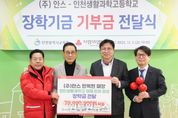 (원투원뉴스) 인천광역시교육청은 5일 ‘㈜안스–인천생활과학고 장학기금 전달식’을 열고 지역 기업과의 협력을 기반으로 직업계고 인재 양성 지원을 강화했다. 이번 전달식은 ㈜안스베이커리 안복현 회장이 사회복지공동모금회를 통해 기탁한 1억 원 중 7천만 원을 향후 5년간 인천생활과학고 장학금으로 지정한 것으로, 안복현 회장과 조상범 인천사회복지공동모금회 회장, 권영범 인천생활과학고 교장이 참석했다. ㈜안스는 2017년부터 인천생활과학고와 산학협력을 이어오며 취업맞춤반 운영, 현장실습 지원, 30여 명의 졸업생 정규직 채용, 학교 발전기금 기탁 등 다양한 형태로 학생들의 진로·취업을 꾸준히 지원해 왔다. 학교 측은 이번 장학기금이 학생들의 역량 개발과 글로벌 진로 탐색에 실질적인 도움을 줄 것으로 기대하며, 지역기업–학교–교육청이 함께 만들어가는 모범적 상생 협력 모델로 자리매김할 것으로 전망하고 있다. 도성훈 교육감은 “지역 기업과 학교의 협력이 학생들이 전문 인재로 성장하는 데 큰 의미가 있다”며 “이번 장학기금이 제과·제빵 분야 미래 인재 육성의 든든한 기반이 될 것”이라고 말했다.