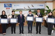 (원투원뉴스) 창녕군은 27일 사무관 승진자 5명에게 교지(敎旨) 형태의 임용장을 수여했다. 이번 임용장 수여는 지방행정 발전과 군정 주요 현안 추진에 기여해 온 승진자들의 노고를 격려하고, 중간관리자로서의 책임과 역할을 강조하기 위해 마련됐다. 특히 교지형 임용장은 전통성과 상징성을 담아 공직자로서의 사명감과 자긍심을 높이는 의미를 더했다. 성낙인 군수는 “사무관은 조직의 중추적 역할을 수행하는 핵심 간부공무원로서, 군민이 체감할 수 있는 현장 중심의 적극행정과 친절행정을 통해 신뢰받는 창녕군정을 구현해 달라”고 당부했다.