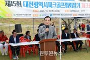 (원투원뉴스) 대전시의회 조원휘 의장은 25일 갑천파크골프 1구장(유성구 탑립동)에서 개최된 제15회 대전광역시협회장배 파크골프대회에 참석해 안전한 대회 진행을 기원하며, 일류 체육도시 대전 조성을 위한 정책적 관심과 지원을 약속했다. 이날 대회는 지역을 대표하는 단체·기관장, 임원 및 선수, 시민 등 350여 명이 참석한 가운데 시 협회장의 대회사, 주요내빈 축사, 기념촬영 등의 개회식을 마친 뒤 남녀와 시니어·일반부로 나눠 18홀 스트로크 방식의 본격적인 대회로 이어졌다. 조원휘 의장은 “대전에는 유등천, 갑천, 을미기공원 등 6곳, 총 99홀의 파크골프장이 운영되고 있으며, 시민들의 참여가 늘면서 이제는 파크골프가 대전의 대표적 생활체육으로 자리잡았다”면서, “시민들의 관심과 수요가 커지는 만큼 동구 용운동에 2026년 12월까지 4,600여 평, 성북동에 2029년까지 최대 90홀 규모의 파크골프장이 조성되는 등 대전시의회는 시민들의 체육인프라 조성에 많은 노력을 기울이고 있고, 앞으로도 시민 모두가 파크골프를 비롯한 다양한 생활체육을 언제, 어디서나 즐길 수 있도록 의회 본연의 역할에 최선을 다하겠다”고 말했다.