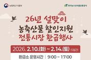 (원투원뉴스) ■ 2026년 설맞이 농축산물 할인지원 전통시장 환급행사 - 2026.2.10.(화)~2.14.(토) (5일간) - 환급소 운영시간 9:00~17:00 ※ 운영시간은 시장상황에 따라 변경될 수 있음 · 행사기간 내, 1인 2만 원 한도 행사기간 내 구매 영수증 금액 합산 가능/ 추가, 중복 수령 불가 - 3만 4000원 이상 구매 시 온누리 상품권 1만 원 환급 - 6만 7000원 이상 구매 시 온누리 상품권 2만 원 환급 예산 소진 또는 부정환급 적발 시 조기종료 ■ 환급절차 ① 국내산 신선 농축산물 구매 후 영수증 수령 ② 점포주가 농축산물 환급 앱에 판매 정보 입력 ③ 구매 영수증, 본인확인 수단(휴대전화) 지참 후, 환급소 방문 ④ 구매한 영수증 및 본인확인 후 상품권 수령 ■ 행사대상 참여 점포에서 국산 신선 농축산물 구매한 고객 ■ 불가항목 · 본인확인 수단(휴대전화) 미지참 시 환급불가 · 국산 신선 농축산물이 아닌 품목 · 행사 미등록 점포 구매 영수증 · 재발행 영수증, 간이 영수증 환급 · 행사 기간 내 구매가 아닌 영수증 · 구매 고객이 아닌 대리인(ex. 구매는