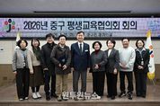 [제호]대전 중구는 20일 중구청 대회의실에서 중구청장(협의회 의장), 평생교육 전문가, 지역 교육기관 관계자 등이 참석한 가운데 ‘2026년 중구 평생교육협의회’를 개최했다고 밝혔다. 중구 평생교육협의회는 평생교육 사업을 효율적으로 추진하기 위해 평생교육전문가, 지역교육기관 관계자 등 총 12명의 위원으로 구성되어 있다. 이날 회의에서 위원들은 2025년도 평생교육 주요 성과를 되짚어보고, 이를 바탕으로 수립된 ‘2026년 평생교육 주요 사업 추진계획’을 공유했으며, 구민 체감도를 높이기 위한 평생교육 활성화 방안에 대해 심도 있는 의견을 교환했다. 구는 이번 협의회에서 제안된 현장의 목소리를 2026년도 사업 운영에 적극적으로 반영하여, 구민 누구나 소외됨 없이 학습할 수 있는 환경을 조성해 나갈 방침이다. 중구 관계자는 “이번 협의회에서 논의된 다양한 의견은 중구가 평생학습도시로 한 단계 더 도약하는 소중한 밑거름이 될 것”이라며, “보편적 평생학습 체계를 구축하고 각 기관과 유기적으로 협력하여, 누구나 배우고, 가르치고, 성장할 수 있는 평생 학습 공동체 도시, 중구를 만드는 데 최선을 다하
