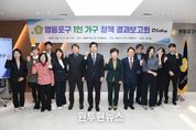 (원투원뉴스) 영등포구의회 의원연구단체 '영등포구 1인 가구 정책연구회'가 27일 오후 4시 영등포구의회 다목적회의실에서 최종보고회를 개최하고 올해 연구 활동을 마무리했다. 이날 최종보고회에는 연구회 소속 의원들(전승관 대표의원·임헌호 간사·김지연·신흥식·양송이·이예찬·최봉희 의원)과 연구용역을 맡은 한국갤럽 관계자 등이 참석해 그동안의 연구성과와 정책 방향 등을 공유했다. 정선희 의장도 자리를 함께하며 연구회의 노고를 격려했다. 정선희 의장은 축사를 통해 "영등포구 1인 가구의 현실적인 지원 방안 모색을 위해 그동안 애써주신 연구회 소속 의원들과 한국갤럽 관계자분들께 감사드린다"며 "오늘 제시되는 연구 성과들이 1인 가구가 소외되지 않고 지역 사회 안에서 건강하게 살아갈 수 있는 정책의 밑거름이 되기를 기대한다"고 밝혔다. 전승관 대표의원은 "1인 가구가 급증함에 따라 맞춤형 정책 마련이 시급하다고 판단해 이번 연구회를 구성했다"며 "한국갤럽과 협력해 FGI와 정책토론회 등을 진행하며, 실제 1인 가구가 겪는 어려움과 정책 수요를 면밀히 파악했다"고 밝혔다. 전승관 대표의원은 "이번 연구를 통해