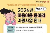 (원투원뉴스) 대전 서구는 1인 가구의 사회적 고립을 예방하고 건강한 사회적 관계망 형성을 지원하기 위한 ‘마음이음 동아리 지원사업’ 참여자를 모집한다. 올해로 3년째 지속 운영되고 있는‘마음이음 동아리 지원사업’은 1인 가구의 정서적 고립 해소와 사회적 연결망 형성을 지원하기 위해 마련됐다. 특히 대전 서구는 1인 가구 비중이 전국에서 높은 지역으로, 다양한 연령층을 아우르는 사회적 관계망 형성 지원의 필요성이 크다. 해당 사업은 20대부터 80대까지 연령에 관계없이 참여할 수 있으며, 공통의 관심사를 바탕으로 이웃 간 교류를 확대하고 새로운 관계를 형성할 수 있도록 지원한다. 참여를 희망하는 이는 서구청 홈페이지 공지사항에서 세부 사항을 확인 후 신청서류를 구비하여 기간 내 신청할 수 있으며, 자세한 사항은 서구청 복지정책과 통합돌봄팀으로 문의하면 안내받을 수 있다.