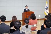 (원투원뉴스) 윤건영 충청북도교육감이 2일, 화합관에서 2월 월례조회를 개최했다. 학년도를 마무리하는 2월을 맞아, 한 해 동안 학생들의 성장을 위해 현장에서 헌신해 온 교직원들에게 감사의 뜻을 전하며 2월의 한자성어로'호리천리(毫釐千里)'를 제시했다. '호리천리'는 처음의 작은 차이가 나중에는 큰 차이를 만든다는 뜻으로, 출발 단계에서의 선택과 판단이 지니는 중요성을 강조하며, 매년 반복돼 관행처럼 이어져 온 업무를 되짚고, 새 학년을 맞아 교육의 방향과 우선순위를 다시 정립할 필요가 있음을 언급했다. 이어, 2월 한 달간의 준비가 3월 이후 학교교육과정 운영과 연간 성과를 좌우하는 만큼, 본청과 직속기관, 교육지원청에 '새 학년 교육과정 준비기간'을 중심으로 개학 전 준비 사항을 빈틈없이 점검해 교육과정이 교실의 변화를 선도하고 학생의 배움과 성장으로 이어질 수 있도록 체계적인 지원을 당부했다. 특히, 올해 중점 추진 정책의 현장 안착을 강조하며 '나도 예술가' 정책과 '소리뜻 한자교육', '눈높이 프로젝트' 등 새롭게 시행되거나 확대되는 정책들이 학교 현장에 잘 녹아들 수 있도록, 학교 교육과