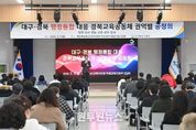 (원투원뉴스) 경북교육청은 9일 경산시에 있는 경산교육지원청 학생교육지원관에서 남부권역(경산.영천.청도.고령.성주.칠곡) 교직원과 학부모 200여 명이 참석한 가운데 ‘대구-경북 행정통합 대응 경북교육공동체 권역별 공청회’ 첫 일정을 개최했다고 밝혔다. 이번 권역별 공청회는 행정통합이라는 큰 변화의 흐름 속에서 자칫 소외될 수 있는 교육 현장의 목소리를 세밀하게 반영하기 위해 마련됐다. 특히 정책 변화의 중심에 있어야 할 학교 현장을 직접 찾아 의견을 듣고, 미래 교육 방향을 함께 고민하는 소통의 장으로 운영될 전망이다. 첫 출발점이 된 이날 남부권 공청회에서는 대구와 인접한 지역 특성이 반영된 학군 조정과 통학 환경 변화, 지역 전보 범위 등에 대한 질의와 우려가 집중적으로 제기됐다. 참석자들은 차분한 분위기 속에서 현실적인 고민과 대안을 공유하며 심도 있는 숙의를 이어갔다. 경북교육청은 현재 진행 중인 행정통합 논의를 ‘위기’가 아닌 ‘미래 교육을 재설계할 기회’로 규정하고 있다. 도심형.농어촌형.산단형 등 다양한 교육 모델이 공존하는 경북의 복합적인 교육환경에 맞는 정책과 행정 변화의 해법을 현장의 지혜에