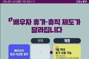 (원투원뉴스) 고용노동부 소관 법률안 국회 의결(2.12.) 1. 배우자 휴가·휴직 제도가 달라집니다. · 배우자가 유산·사산한 경우 (현재) - (개정) (신설) 5일 이내 휴가 사용 가능 *최초 3일 유급(우선지원대상기업 노동자 급여지원) · 배우자의 출산이 임박한 경우 (현재) 출산 후 120일 이내 출산휴가 사용 가능 (개정) 출산 50일 전부터 출산 후 120일 이내 출산휴가 사용 가능 · 배우자가 유산·조산 위험이 있는 경우 (현재) 출산 후 육아휴직 사용가능 (개정) 임신 중 육아휴직 사용 가능 *육아휴직 분할 사용 횟수 미차감 2. 청년의 연령 범위를 현재 넓힙니다. (현재) 15세 이상~29세 이하 (개정 후) 15세 이상~34세 이하 → 청년층의 노동시장 진입을 적극 지원 *공포 6개월 후 시행 3. 공무직위원회가 설치됩니다. 공공부문 공무직·기간제·파견 노동자 등의 - 불합리한 차별 해소 - 합리적인 인사기준 논의 *공포 6개월 후 시행 4. 중소기업 퇴직연금 기금 가입 범위를 확대합니다. (현재) 30명 이하 → ('26년 7월 1일) 50인 미만 →