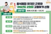 (원투원뉴스) 음식점업 외국인 근로자 '26년도 2회차 고용허가 신청 ■ 신청기간: 2026.4.20.(월)~5.6.(수) ■ 신청 요건 · 업종 한식 음식점업(한국표준산업분류 상 5611), 외국식 음식점업(5612) *고용보험 시스템에 등록된 업종 기준(실제 영업을 영위하는지 여부 등은 '사업자등록증' 또는 '영업신고증'으로 증빙) *기관구내식, 출장이동식, 기타간이, 주점, 비알코올 음료점은 미허용 · 업력 고용허가서 신청일 기준으로 한식·외국식 음식점업으로 연속하여 5년 이상 영업 유지(휴업 기간 포함) *부가가치세 과세표준증명원상 과세기간 또는 사업자등록증상 '개업년·월·일'로 확인 · 고용인원 내국인 근로자 1인 이상 5인 미만 사업장은 1명, 5인 이상 사업장은 2명까지 가능 *내국인근로자(피보험자) 수는 고용부에서 고용보험시스템 전산 확인 · 직무 주방보조원(한국표준직업분류 상 95220) 및 음식 서비스 종사원(45311) *현장 여건에 맞게 직무범위 탄력적 운영 가능 · 문의 - 고용노동부 상담센터 ☎1350 · 신청 - 사업장 관할 고용노동부