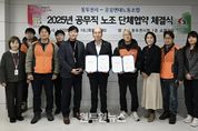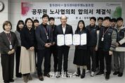 (원투원뉴스) 동두천시와 공공연대노동조합 동두천지부는 지난 16일 동두천시청 1층 소회의실에서 2025년 공무직 노조 단체협약 체결식을 개최했다고 밝혔다. 이번 단체협약은 2023년 12월 노동조합 측의 단체협약 갱신 교섭 요구를 시작으로, 약 2년간 총 21회의 본교섭과 2회의 조정회의, 심판회의를 거쳐 최종 합의에 이르렀다. 공무직 노조의 단체협약 갱신을 위한 18개 요구 사항 가운데 주요 합의 내용은 ▲환경미화원 4명 채용 ▲장기재직휴가 확대 ▲병가 사용 조건 완화 ▲자녀 입영휴가 신설 등 총 6개 안건이다. 박형덕 동두천시장은 “이번 단체협약을 통해 공무직 근로자의 근무여건이 개선되어 더 안정적인 근무 환경에서 시정 발전에 기여할 수 있는 계기가 마련된 것 같다”며, “앞으로도 노사간 상호 신뢰와 협조를 바탕으로 함께 성장하는 근무환경을 조성해 나가겠다”라고 밝혔다. 박성수 지부장은 “단체협약에 합의한 안건들이 공무직 근로자의 사기 진작과 업무 능률을 높이는데 도움이 될 것이라고 생각하며, 앞으로도 노사간 소통과 협력을 통해 공무직 근로자의 복지와 권익을 위해 힘쓰도록 노력하겠다.”라고 말했다.